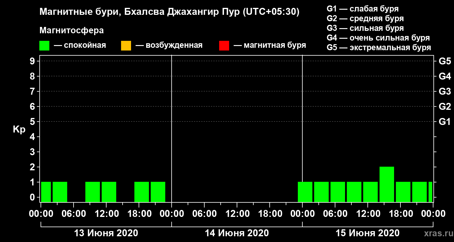 Магнитные бури в Бхалсва Джахангир Пуре 15 июня 2020 года
