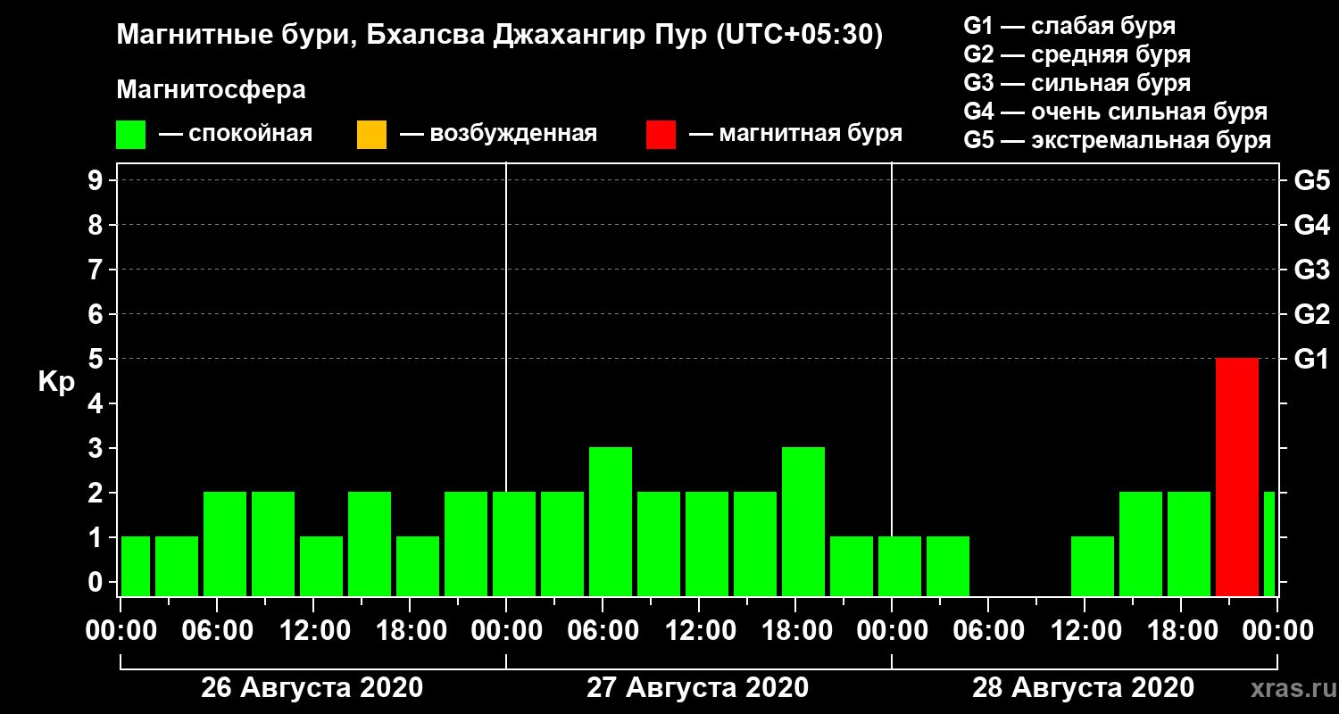 Магнитные бури в Бхалсва Джахангир Пуре 28 августа 2020 года