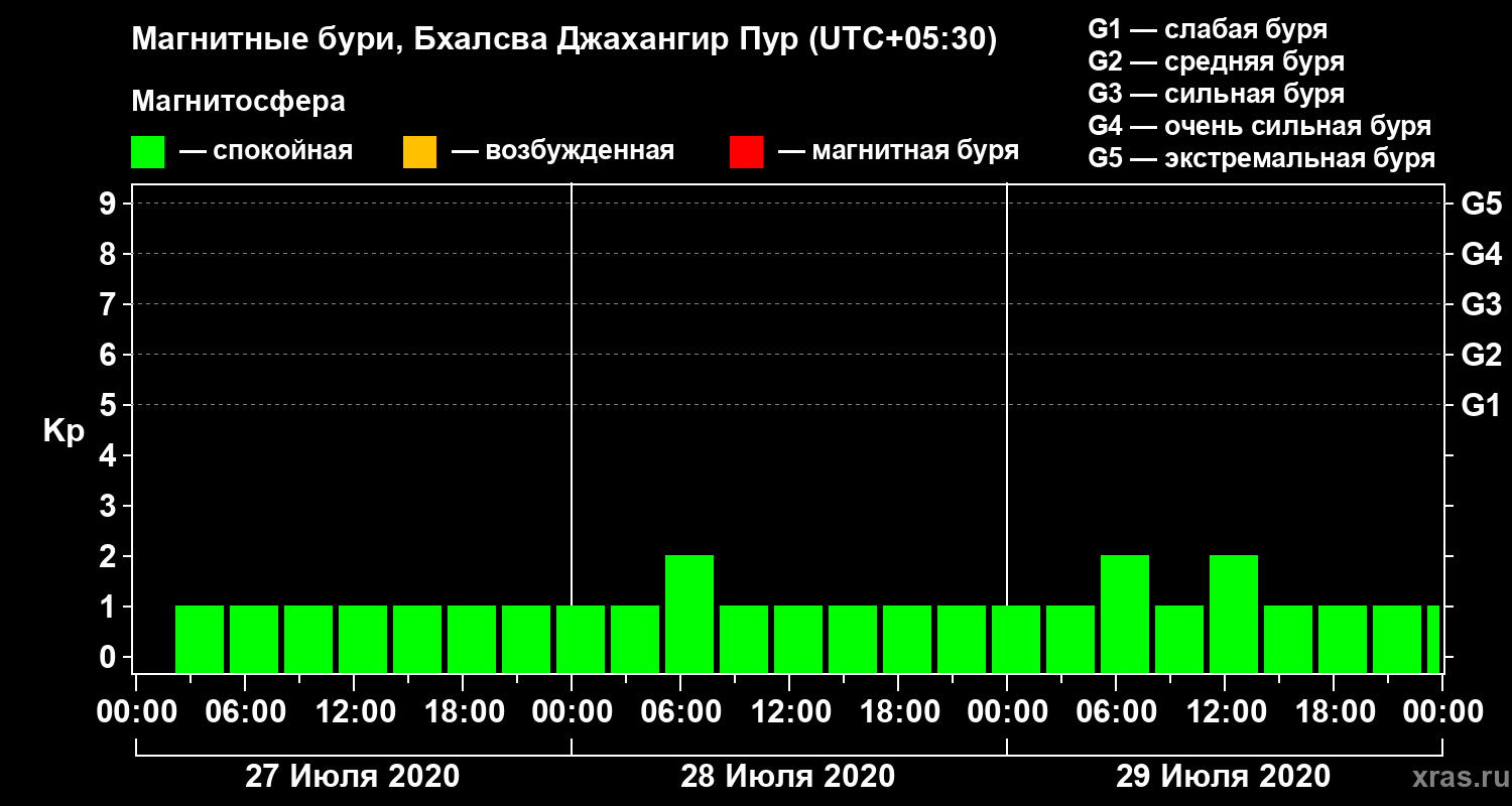 Магнитные бури в Бхалсва Джахангир Пуре 29 июля 2020 года