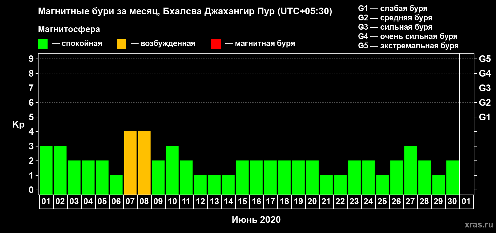 Магнитные бури в Бхалсва Джахангир Пуре — 30 июня 2020 года