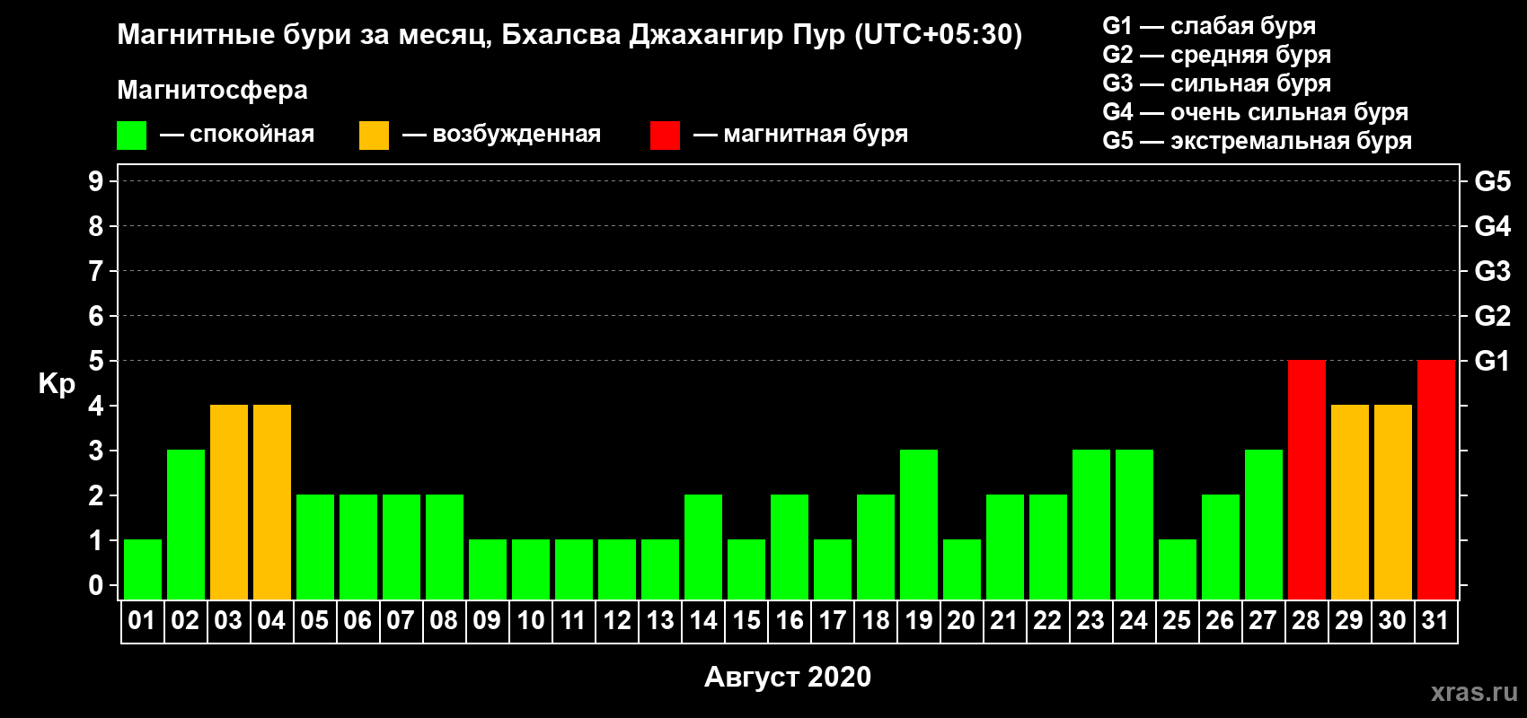 Магнитные бури в Бхалсва Джахангир Пуре 31 августа 2020 года