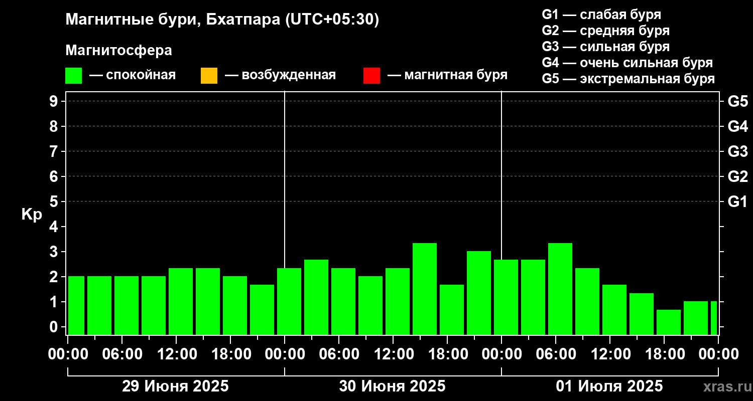 Магнитные бури в Бхатпаре 1 июля 2025 года
