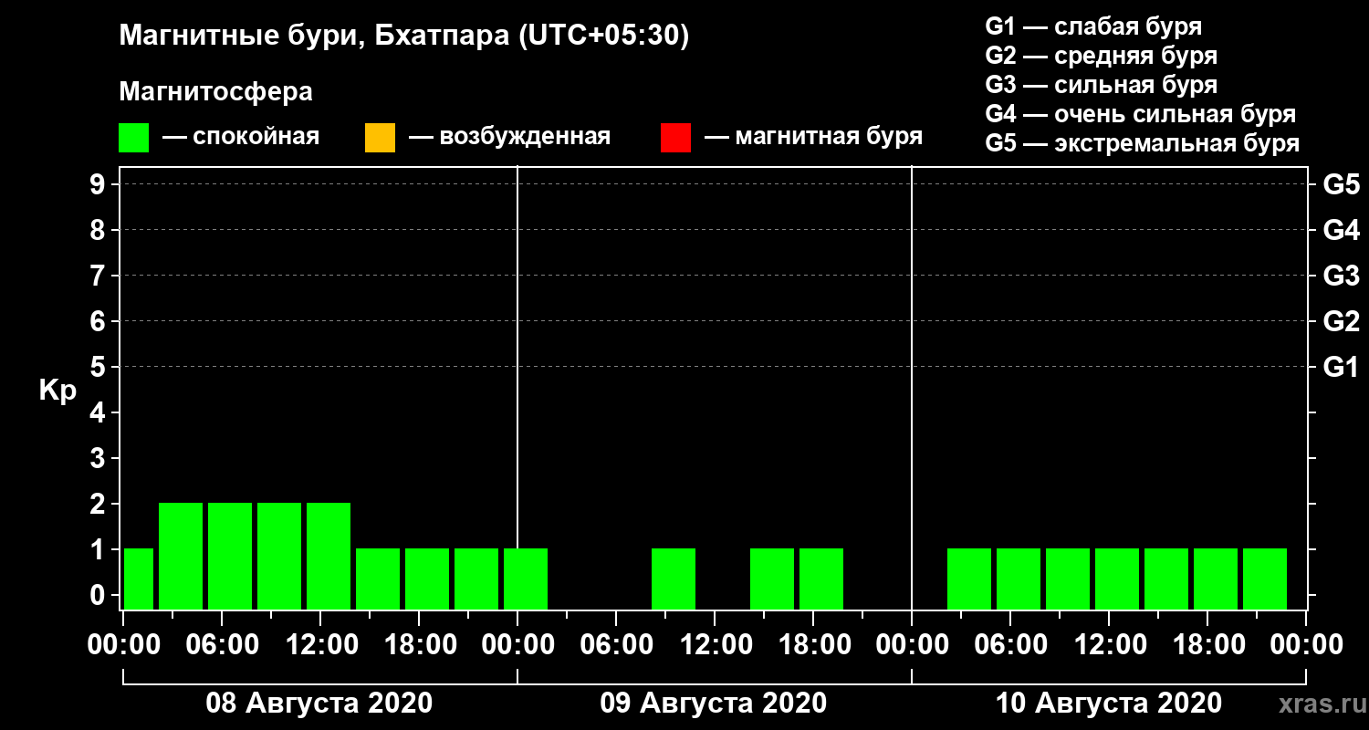 Магнитные бури в Бхатпаре 10 августа 2020 года