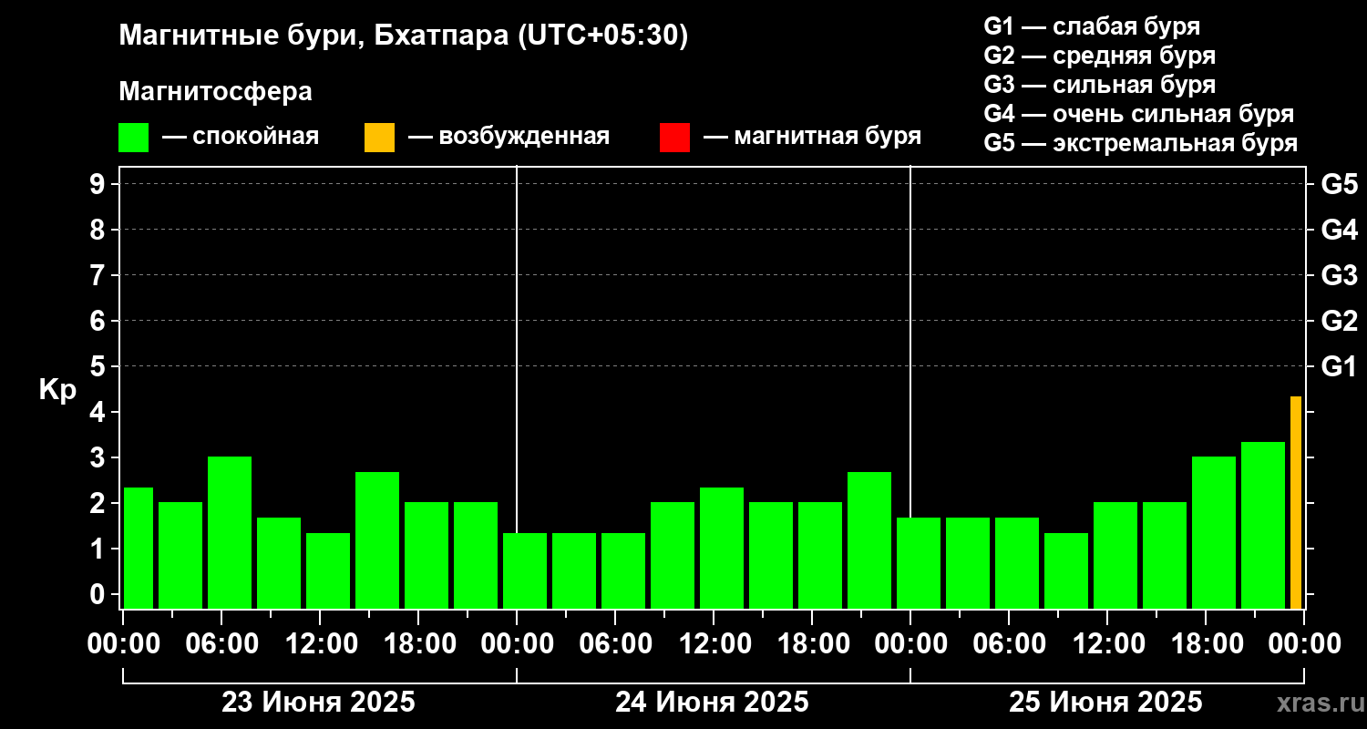 Магнитные бури в Бхатпаре 25 июня 2025 года