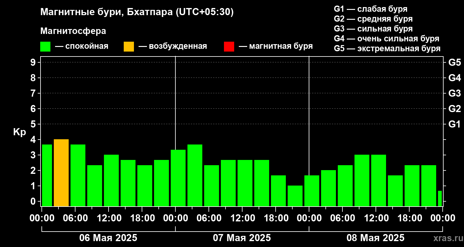 Магнитные бури в Бхатпаре 8 мая 2025 года