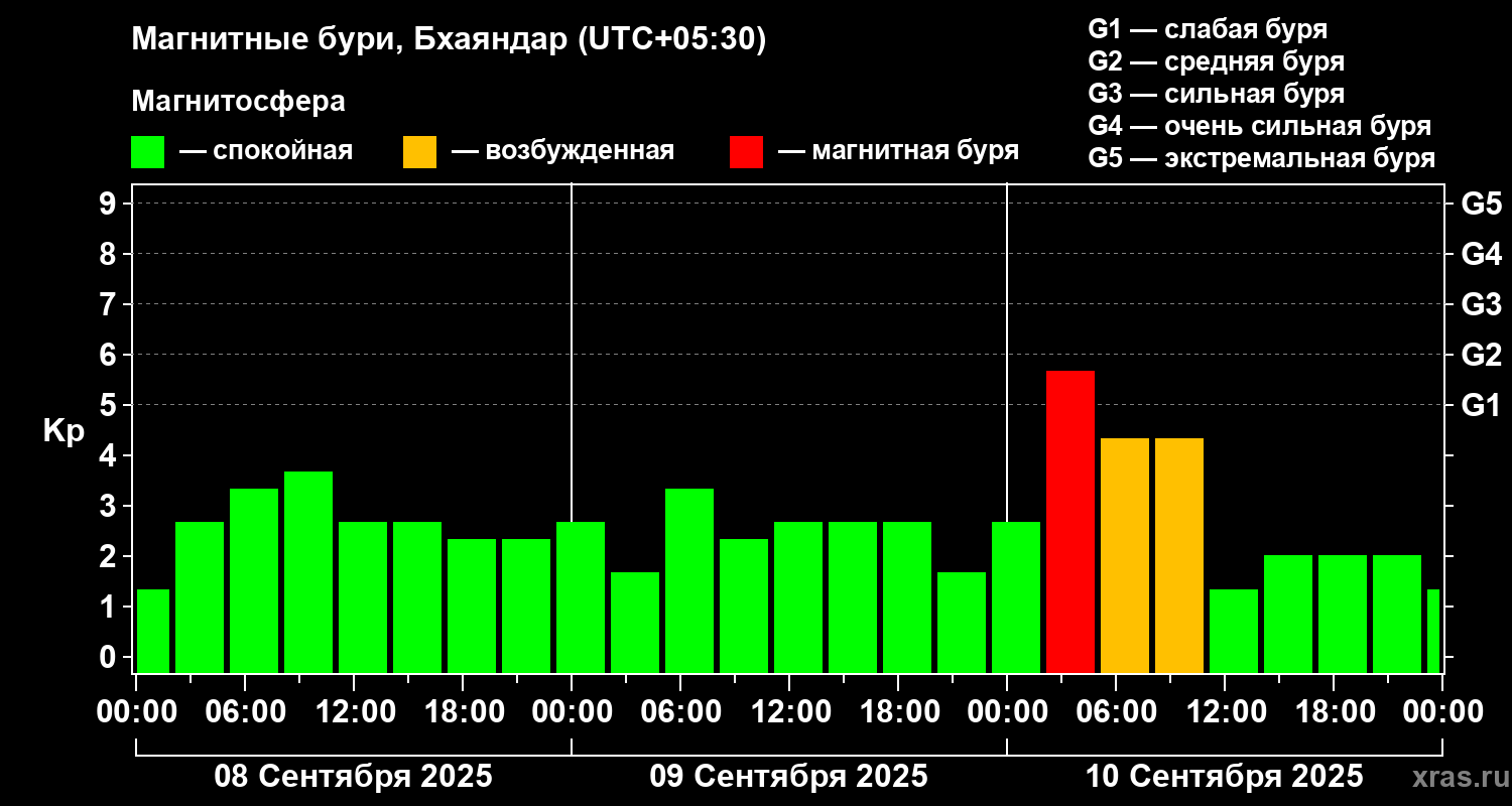 Магнитные бури в Бхаяндаре — 10 сентября 2025 года