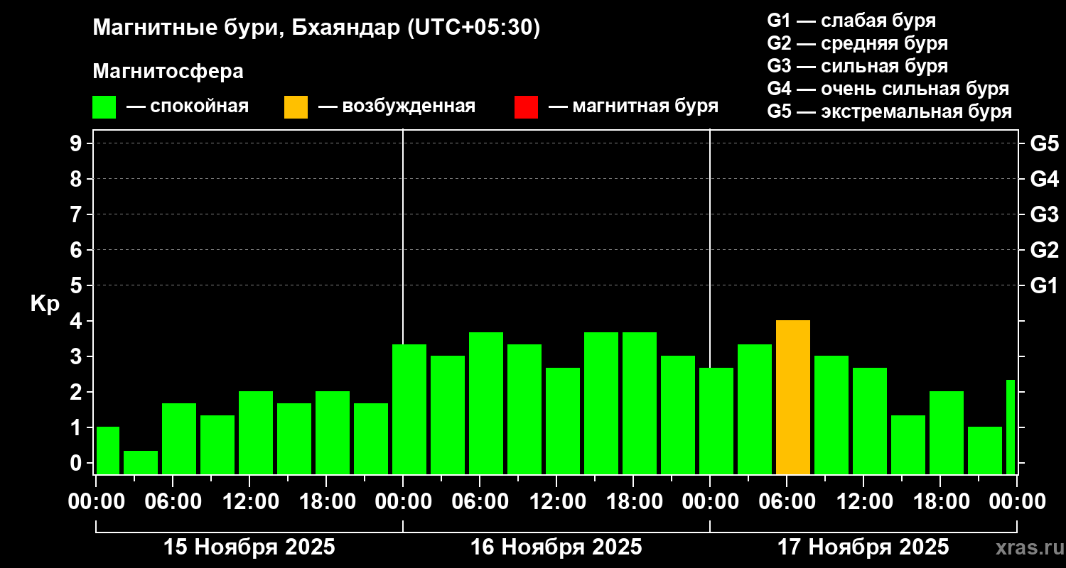 Магнитные бури в Бхаяндаре — 17 ноября 2025 года