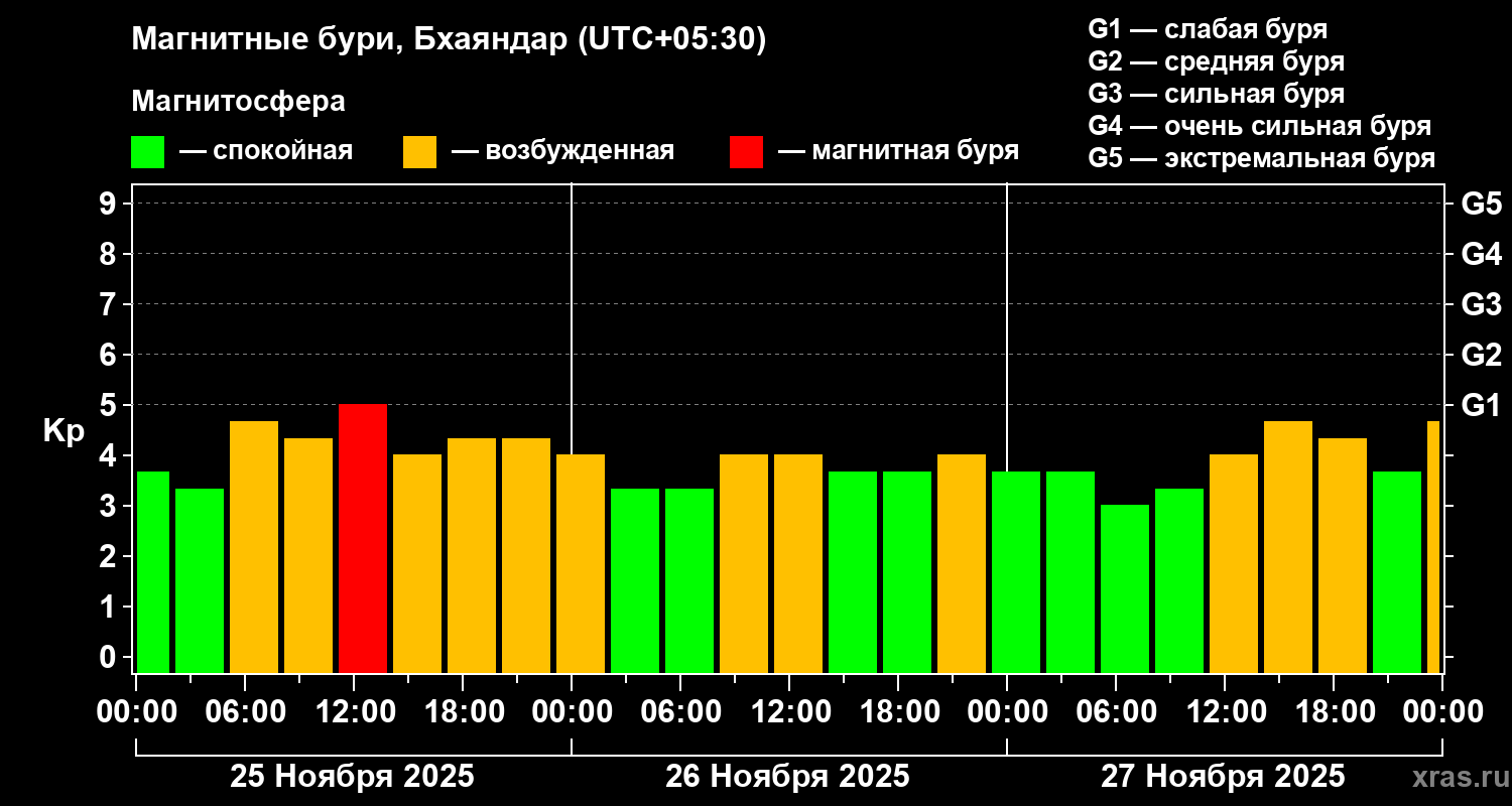 Магнитные бури в Бхаяндаре — 27 ноября 2025 года