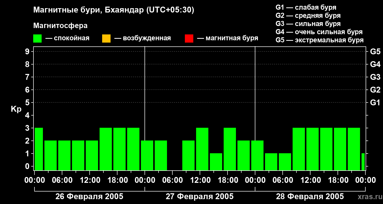 Магнитные бури в Бхаяндаре 28 февраля 2005 года