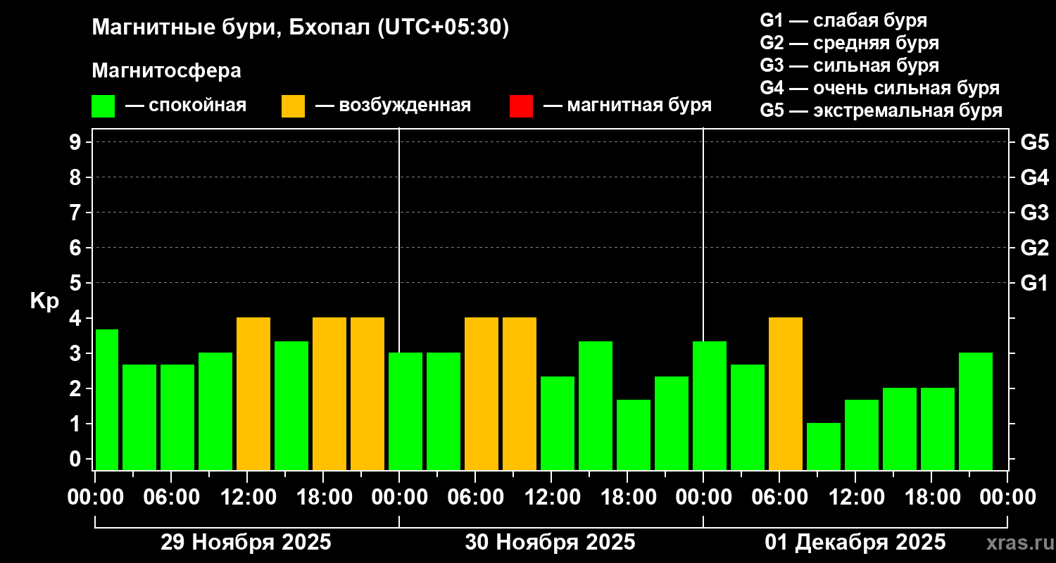 Магнитные бури в Бхопале 1 декабря 2025 года