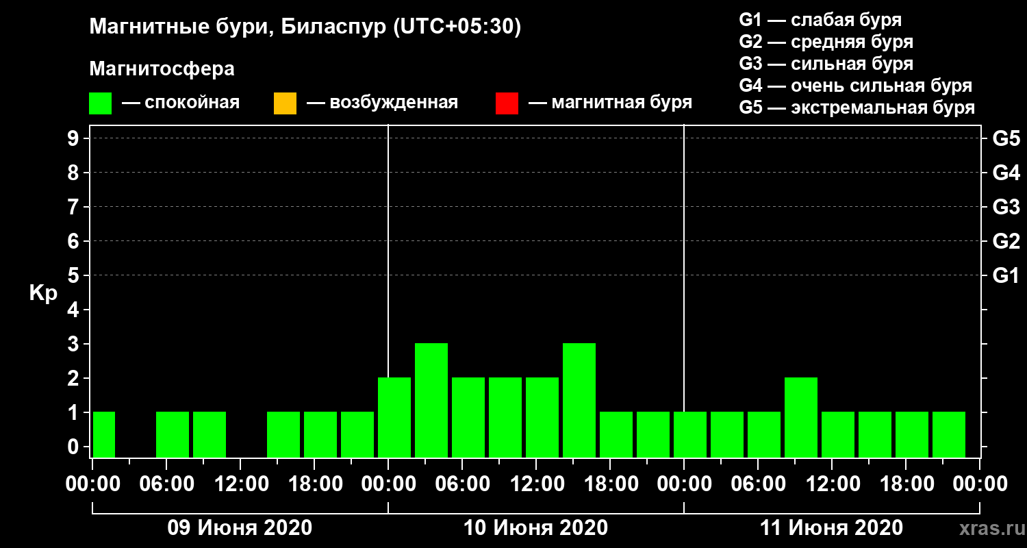 Магнитные бури в Биласпуре — 11 июня 2020 года