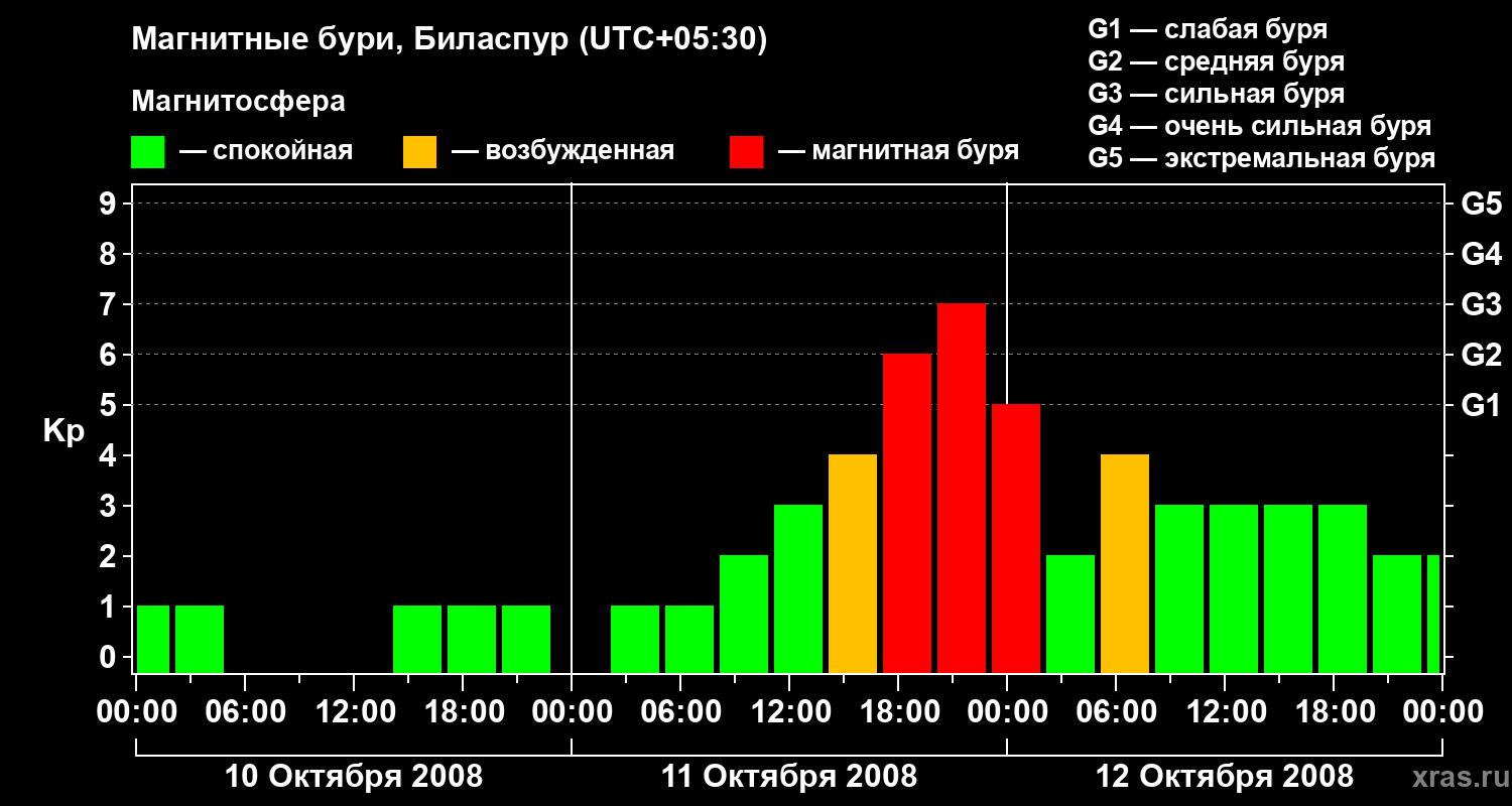 Магнитные бури в Биласпуре — 12 октября 2008 года