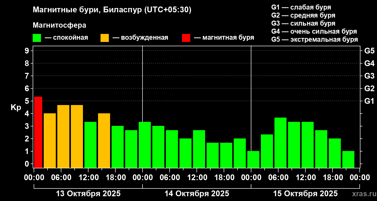 Магнитные бури в Биласпуре — 15 октября 2025 года