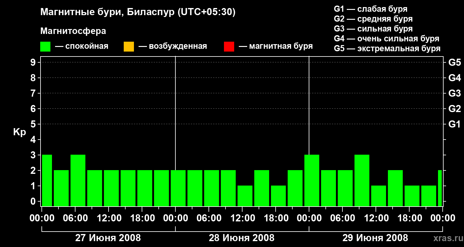 Магнитные бури в Биласпуре 29 июня 2008 года
