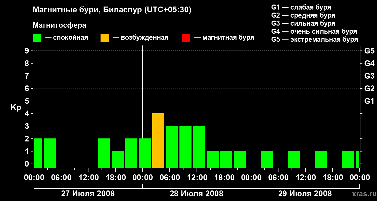 Магнитные бури в Биласпуре — 29 июля 2008 года