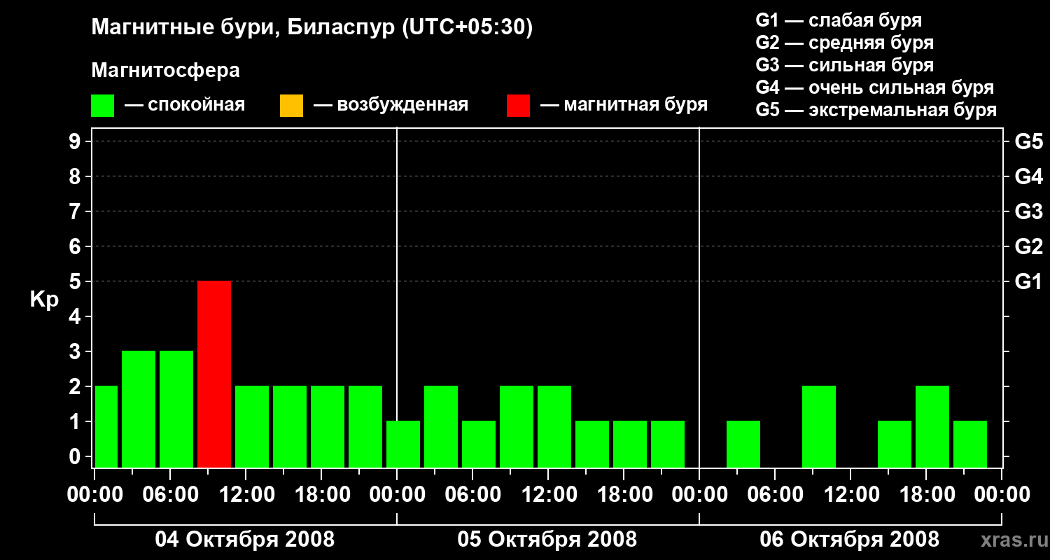 Магнитные бури в Биласпуре — 6 октября 2008 года