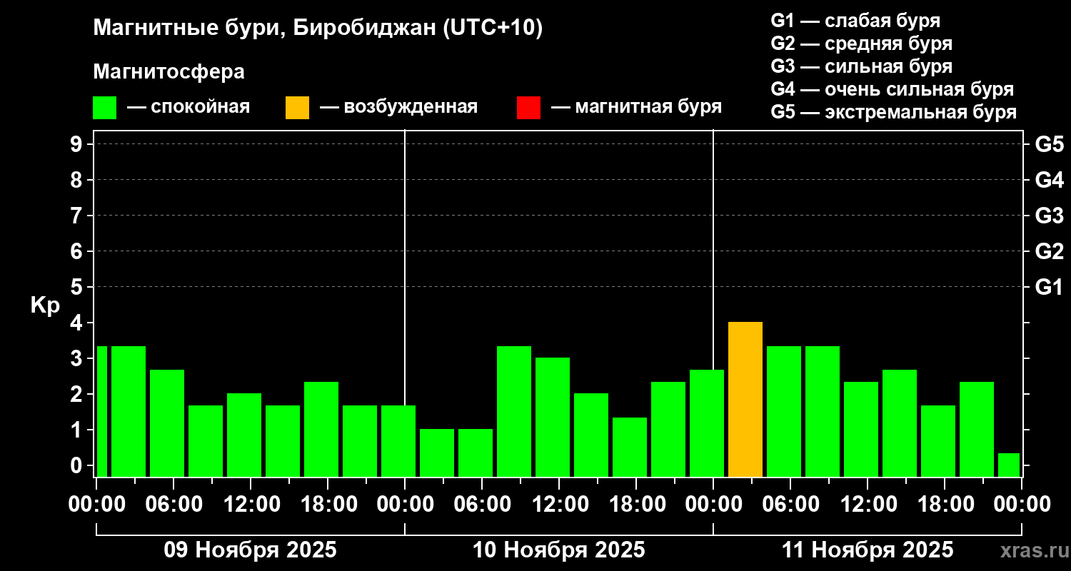 Магнитные бури в Биробиджане — 11 ноября 2025 года