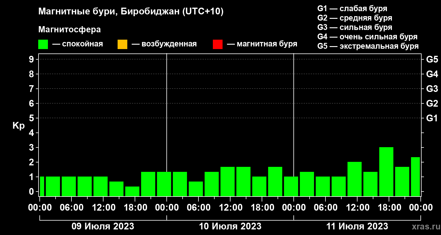 Магнитные бури в Биробиджане — 11 июля 2023 года