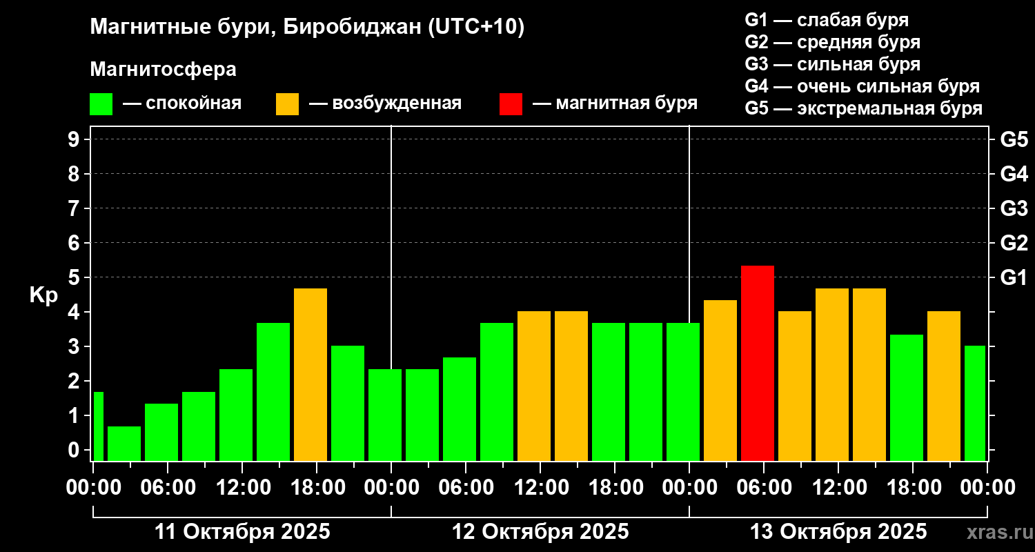 Магнитные бури в Биробиджане — 13 октября 2025 года