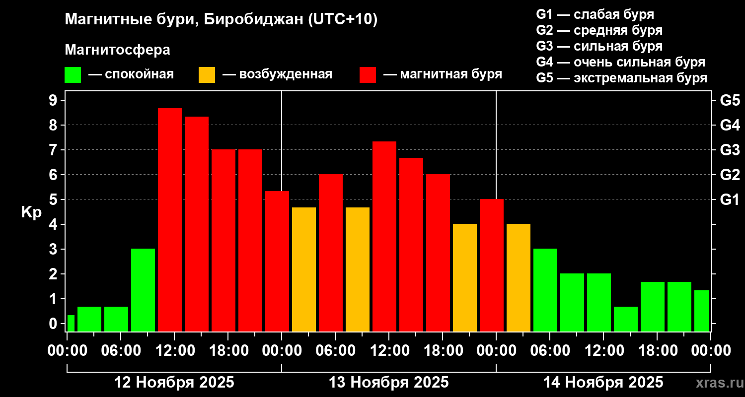 Магнитные бури в Биробиджане — 14 ноября 2025 года
