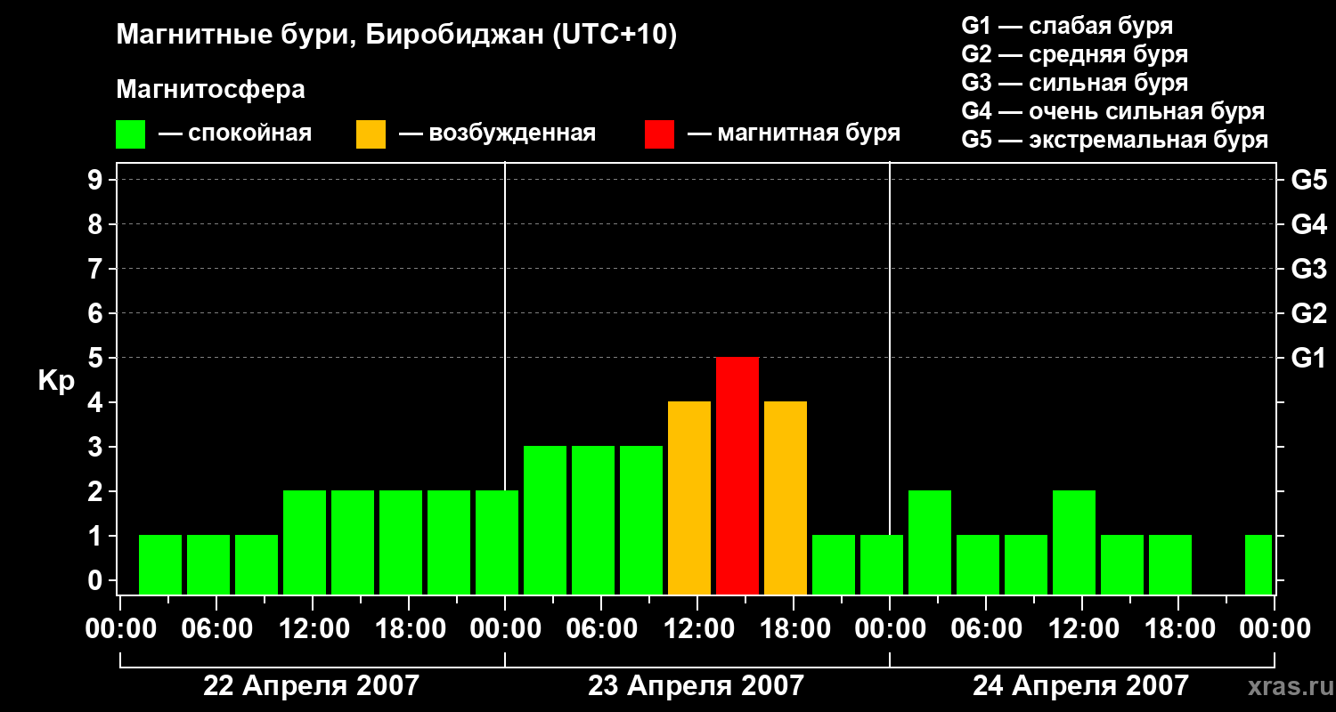 Магнитные бури в Биробиджане — 24 апреля 2007 года