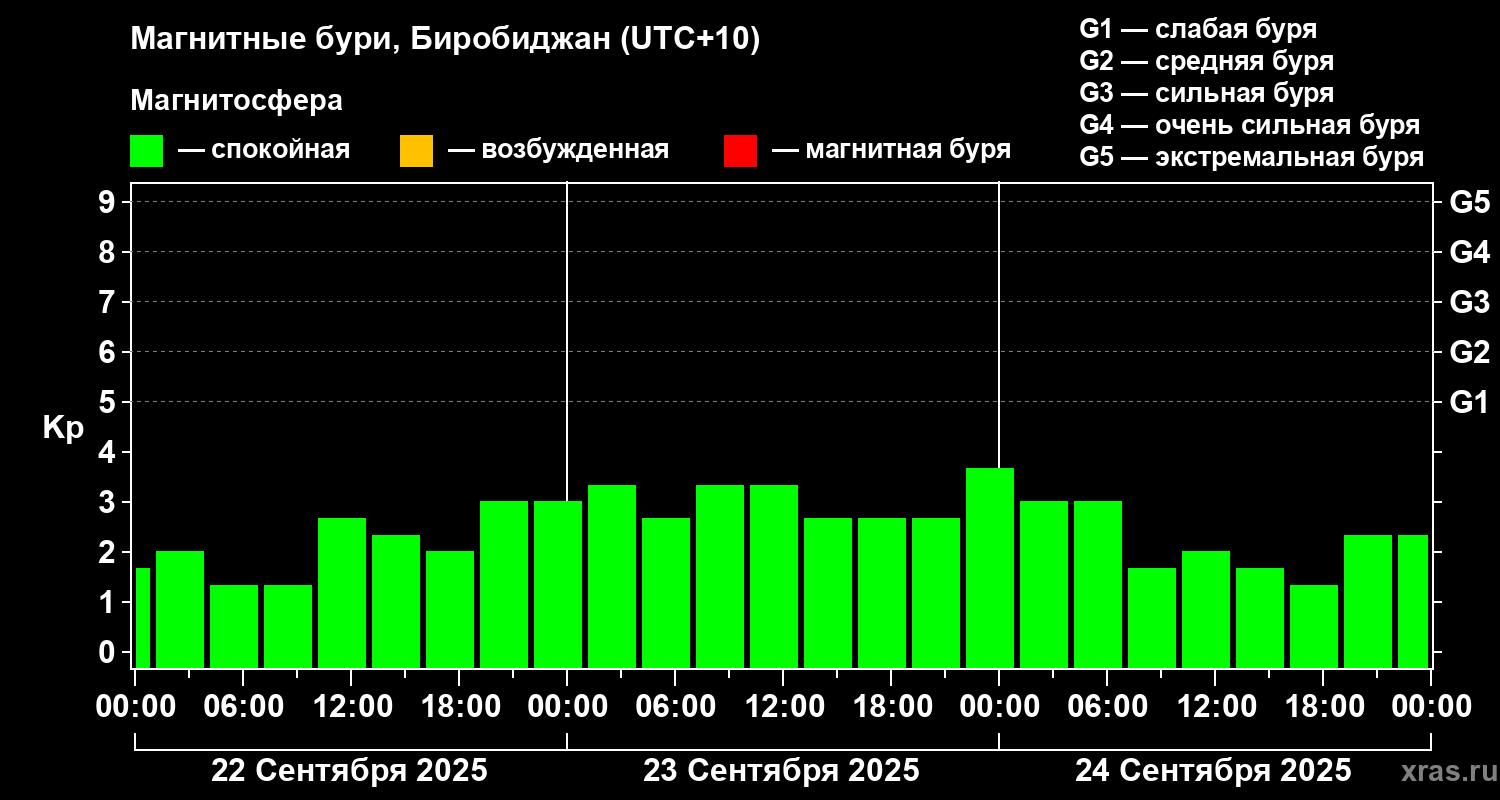 Магнитные бури в Биробиджане — 24 сентября 2025 года