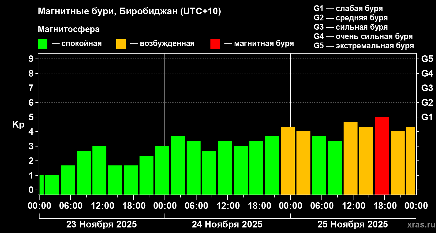 Магнитные бури в Биробиджане — 25 ноября 2025 года
