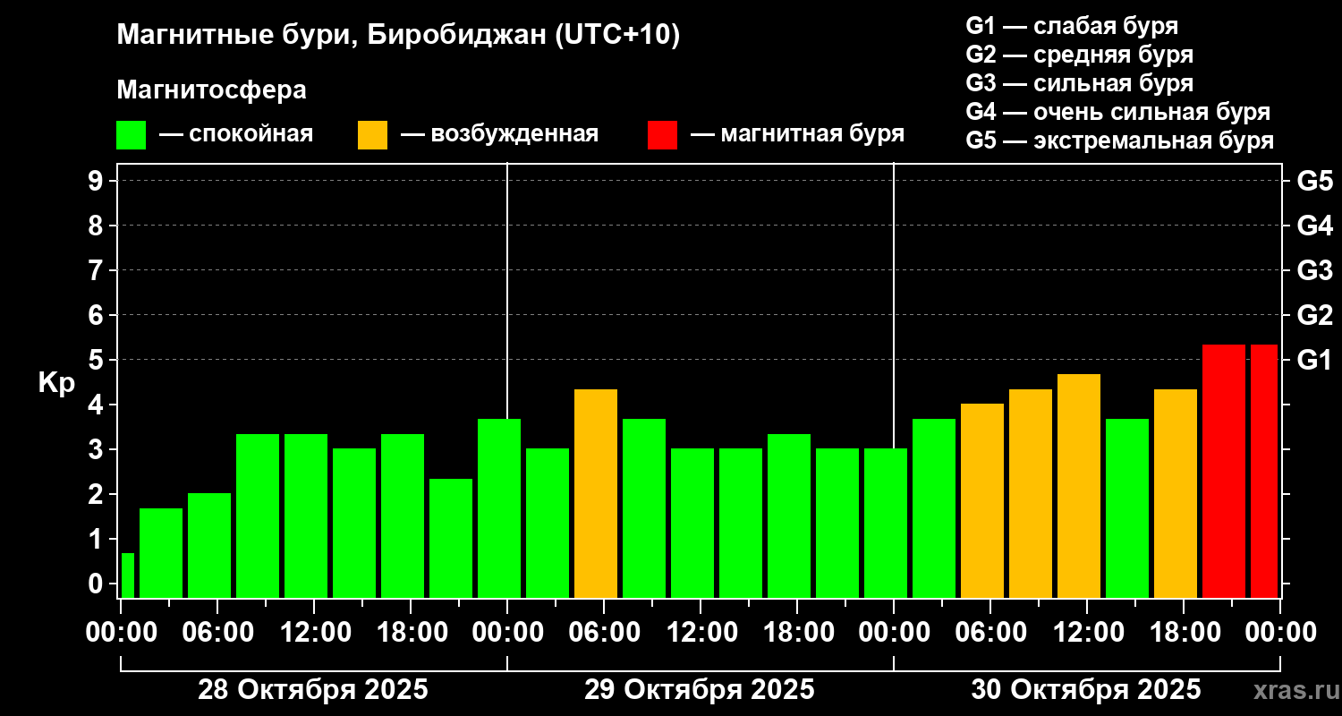 Магнитные бури в Биробиджане — 30 октября 2025 года