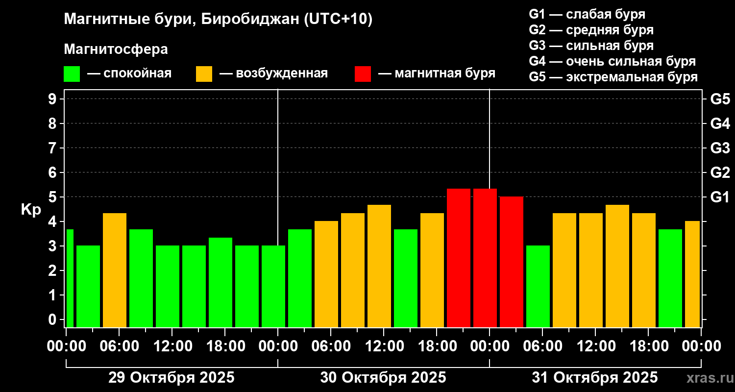 Магнитные бури в Биробиджане — 31 октября 2025 года