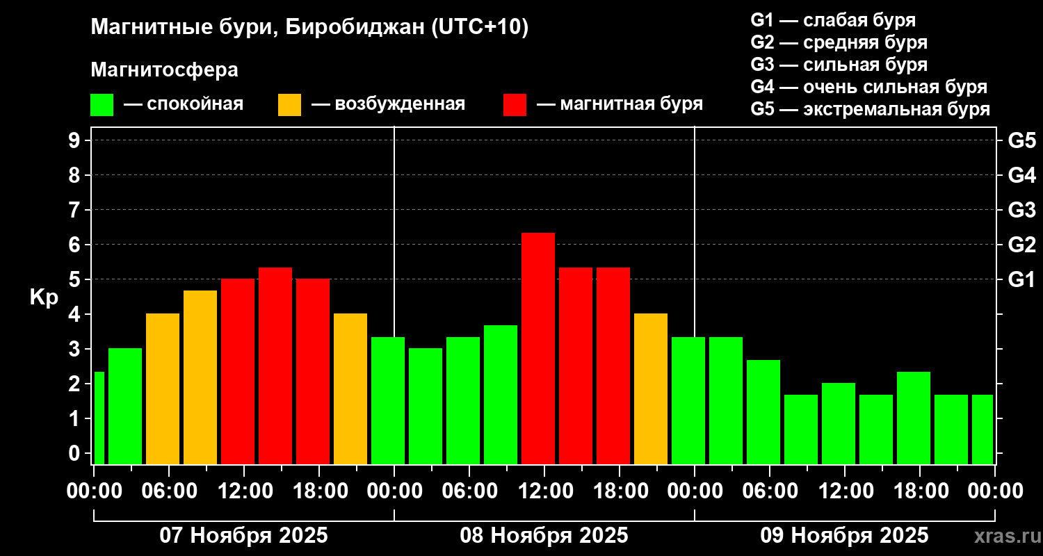 Магнитные бури в Биробиджане — 9 ноября 2025 года