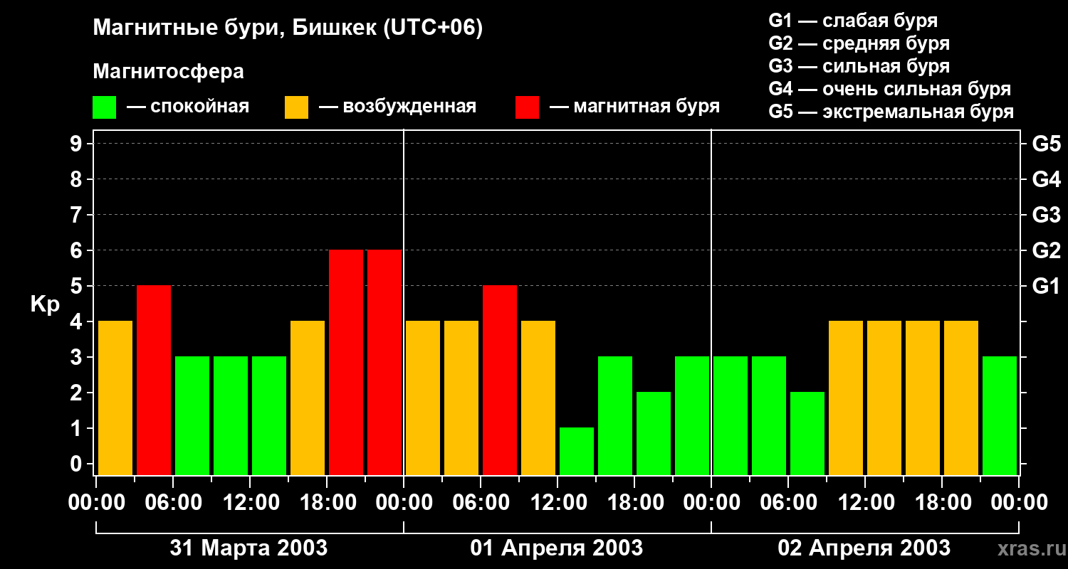 Магнитные бури в Бишкеке — 2 апреля 2003 года