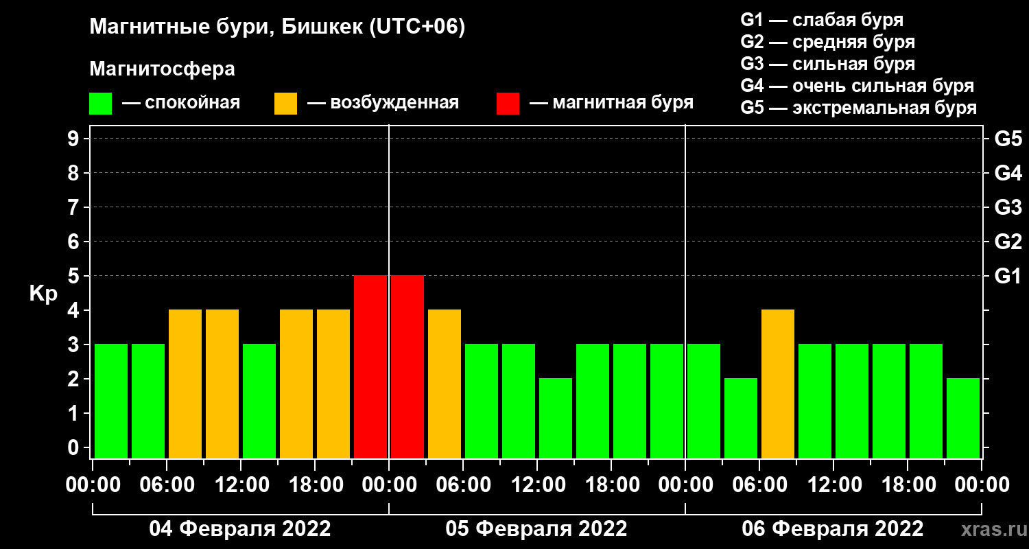 Магнитные бури в Бишкеке 6 февраля 2022 года