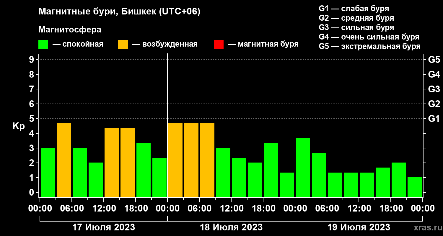 Магнитные бури в Бишкеке 19 июля 2023 года