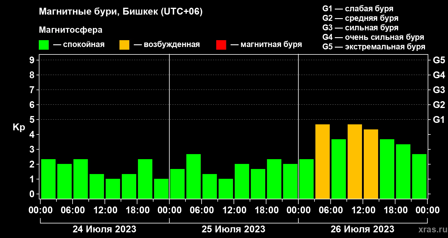 Магнитные бури в Бишкеке 26 июля 2023 года