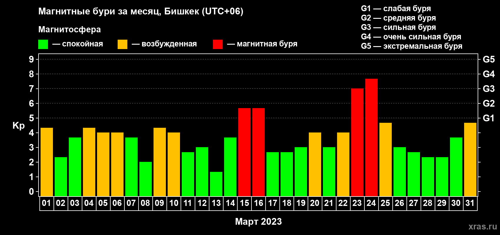Магнитные бури в Бишкеке 29 марта 2023 года