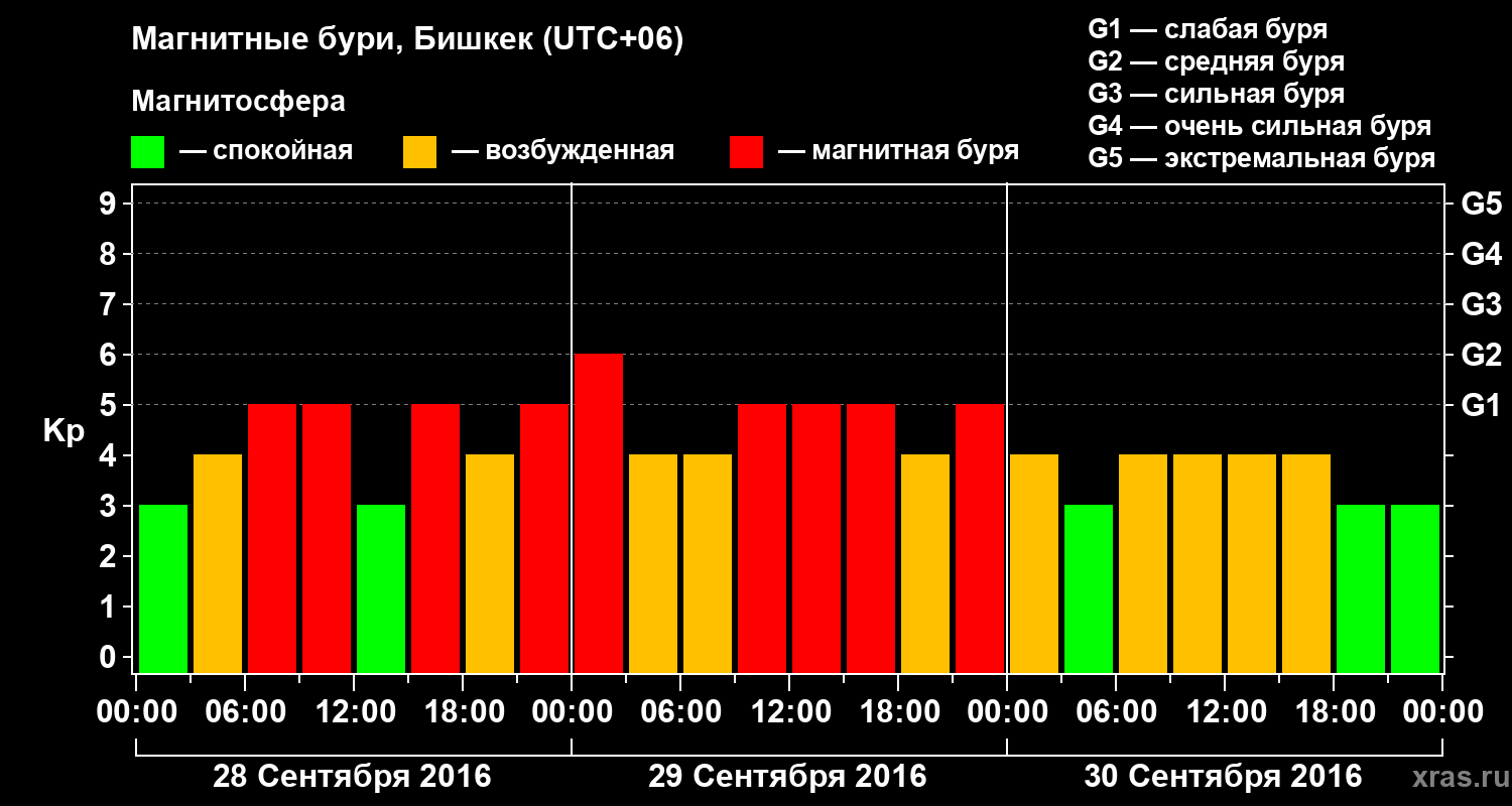 Магнитные бури в Бишкеке 30 сентября 2016 года