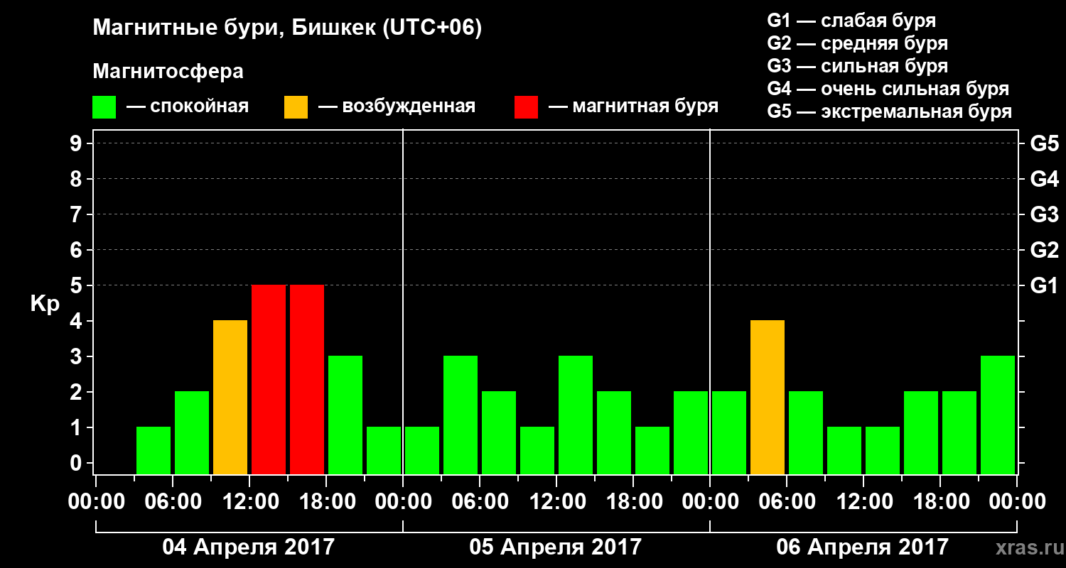 Магнитные бури в Бишкеке 6 апреля 2017 года