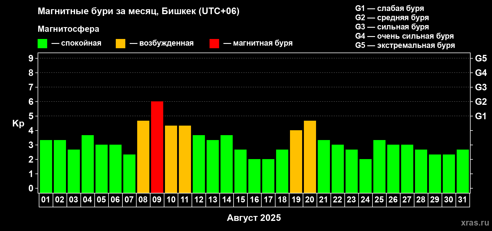 Список магнитных бурь в августе 2025 года