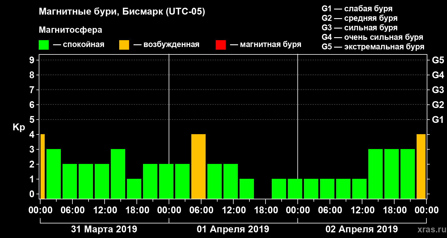 Магнитные бури в Бисмарке 2 апреля 2019 года