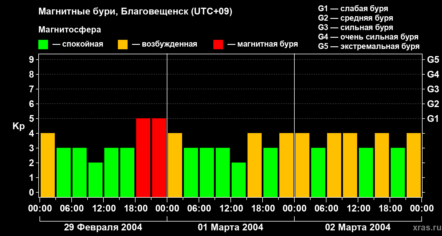 Магнитные бури в Благовещенске — 2 марта 2004 года