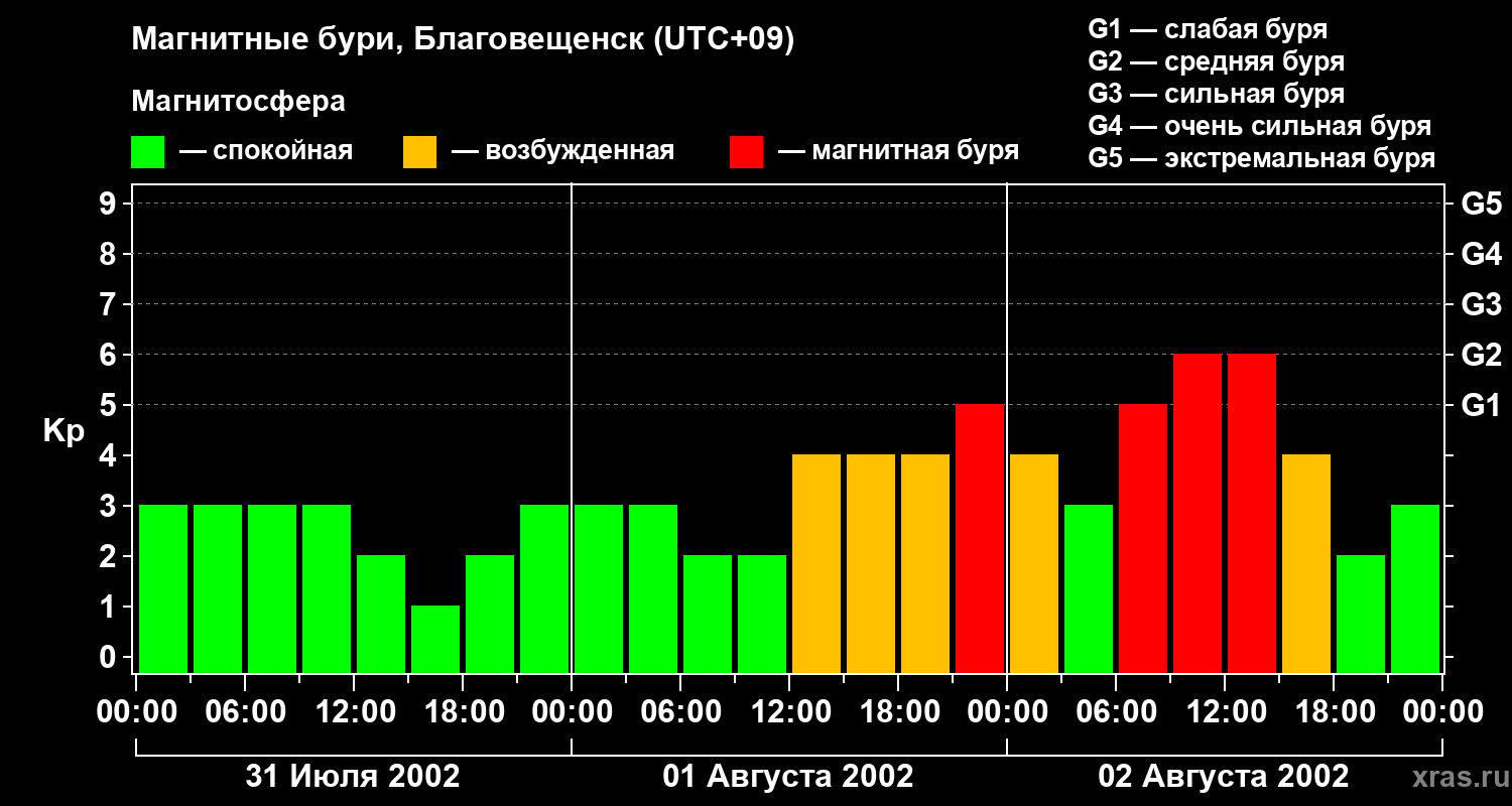 Магнитные бури в Благовещенске — 2 августа 2002 года