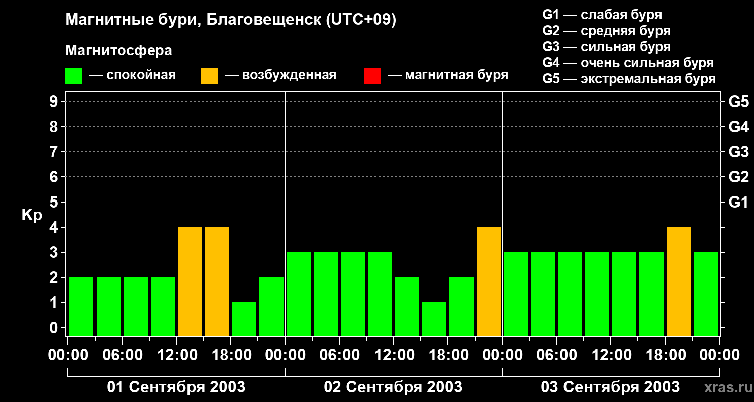 Магнитные бури в Благовещенске — 3 сентября 2003 года