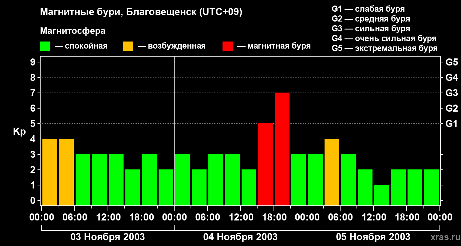 Магнитные бури в Благовещенске — 5 ноября 2003 года