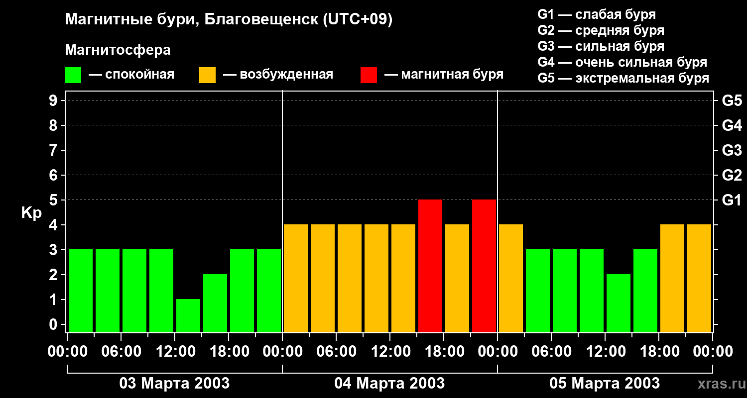 Магнитные бури в Благовещенске — 5 марта 2003 года