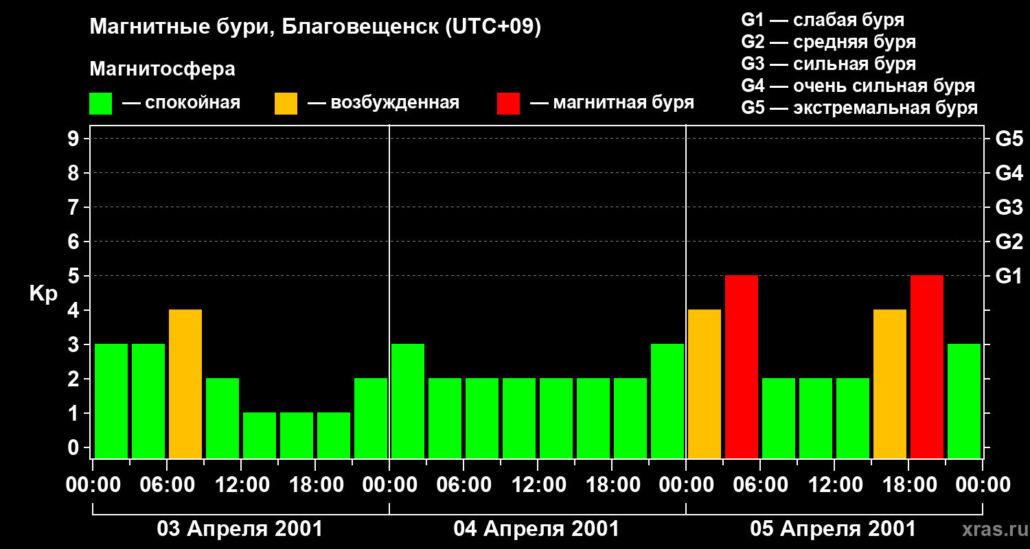 Магнитные бури в Благовещенске — 5 апреля 2001 года