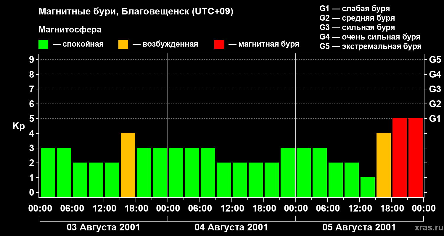Магнитные бури в Благовещенске — 5 августа 2001 года