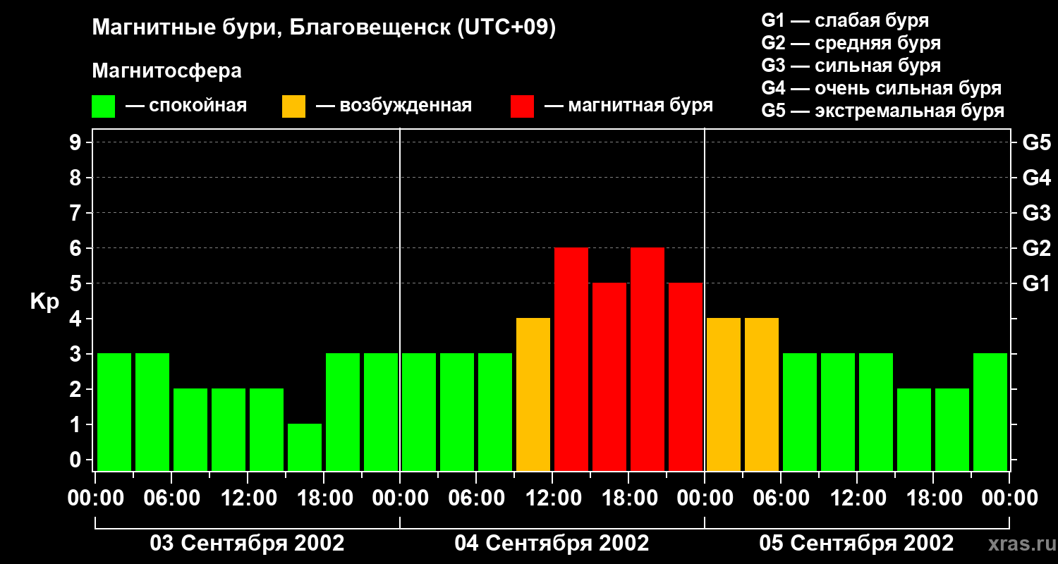 Магнитные бури в Благовещенске — 5 сентября 2002 года