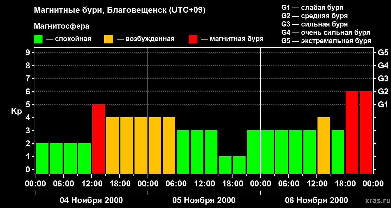 Магнитные бури в Благовещенске — 6 ноября 2000 года