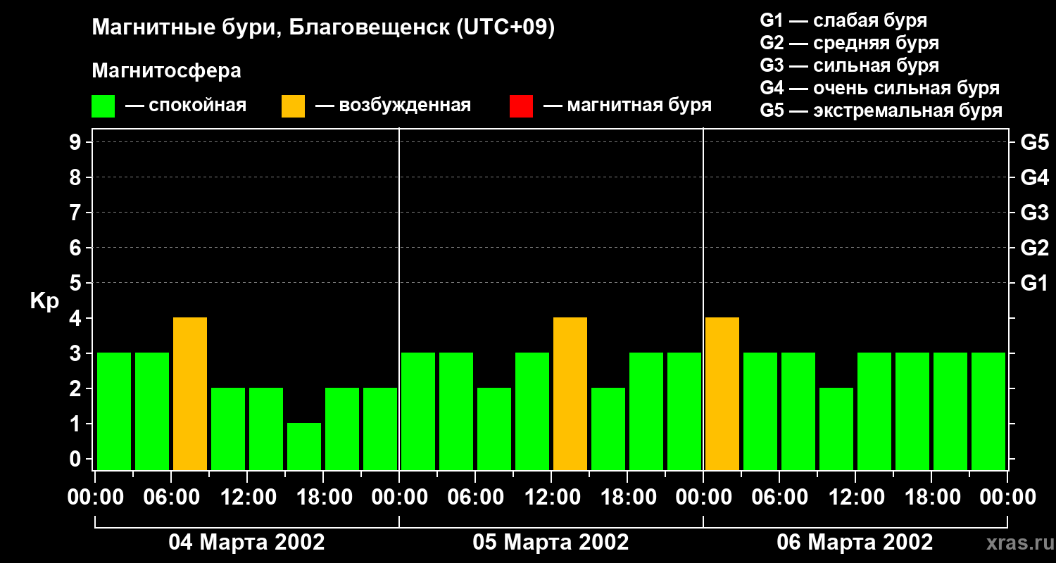 Магнитные бури в Благовещенске — 6 марта 2002 года