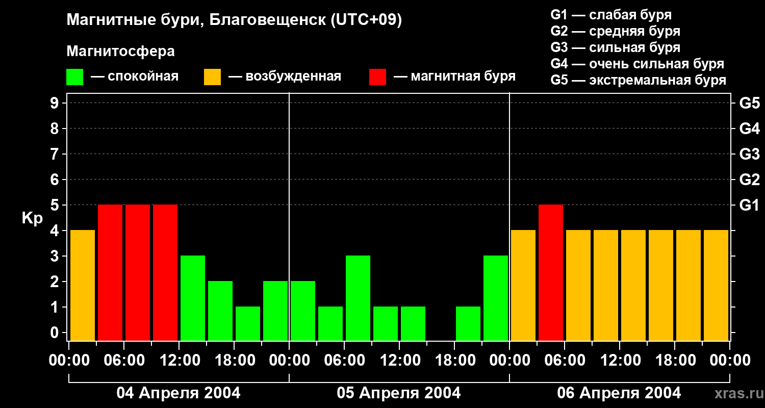 Магнитные бури в Благовещенске — 6 апреля 2004 года